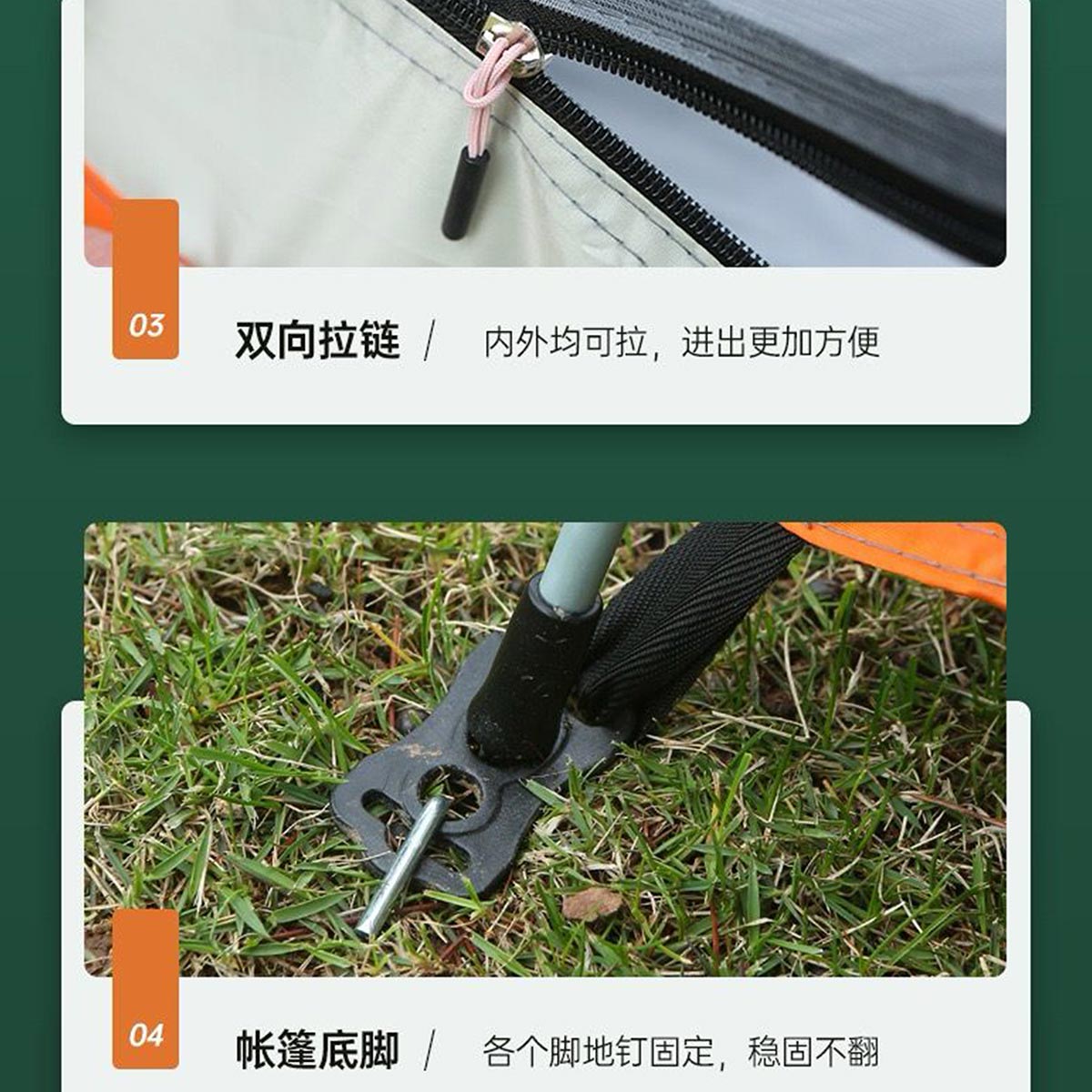 • دارای سایه‌بان ورودی، میخ‌های اتصال به زمین و طراحی جذاب برای کمپر های حرفه ای