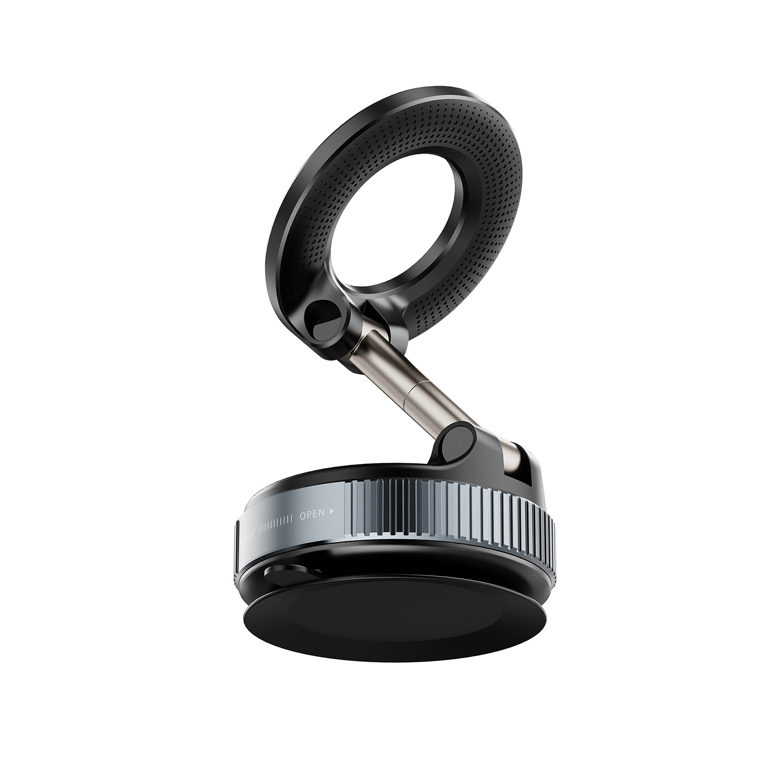 هولدر HK-2202 از سیستم وکیوم قدرتمند بهره میبرد که پایه را به سطح مورد نظر میچسباند و از لغزش آن جلوگیری میکند. نصب این پایه سریع و بدون نیاز به ابزار است و در کمتر از چند ثانیه آماده استفاده میشود.